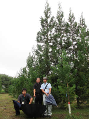 熊本県合志市にある森林総合研究所 林木育種センター九州育種場に行って参りました。 こちらでは主に品種の開発、研究をされていて、エリートツリーや、抵抗性クロマツ等の開発、普及等をされてます。 写真の大隅トリオと写っている木(目測8mくらい)は5年生のエリートツリー(九育2-203)です。 デカイ!!下刈り2年程度省略できるということで、育林コスト削減に期待大ですね。 エリートツリーの普及に期待したいです。